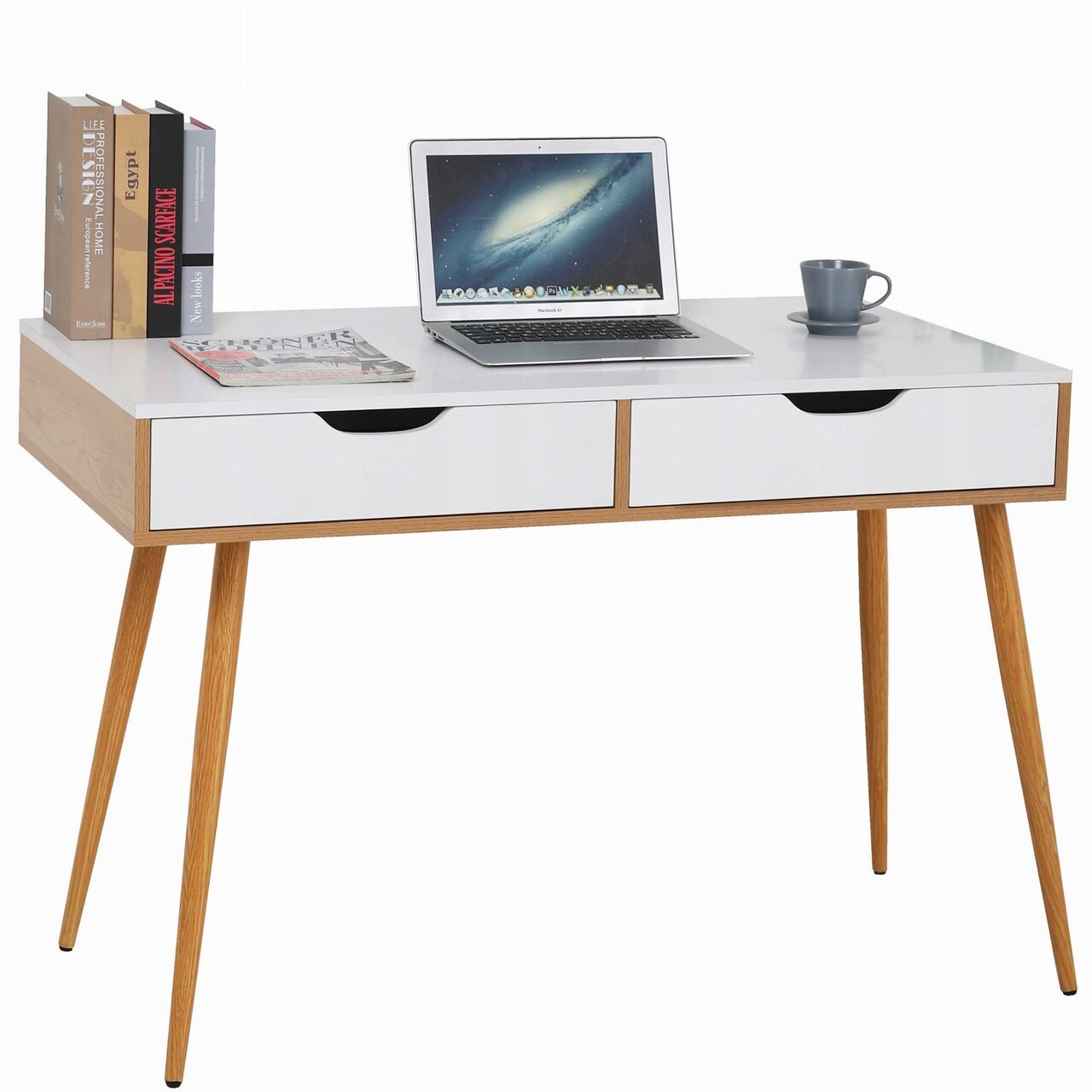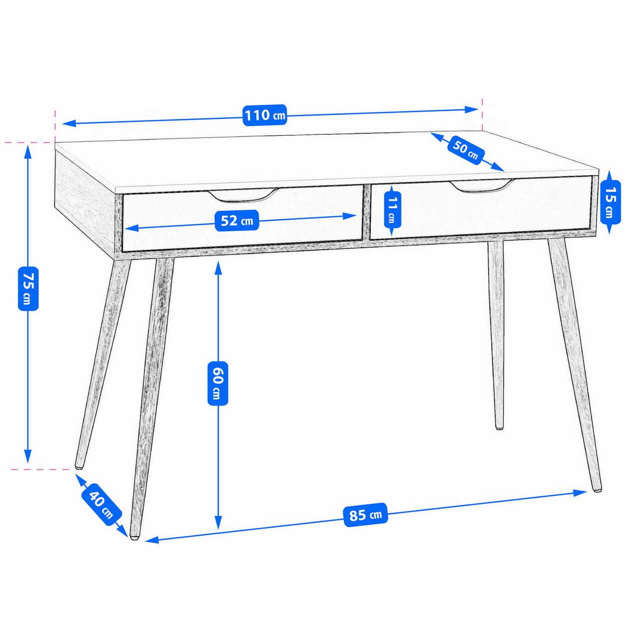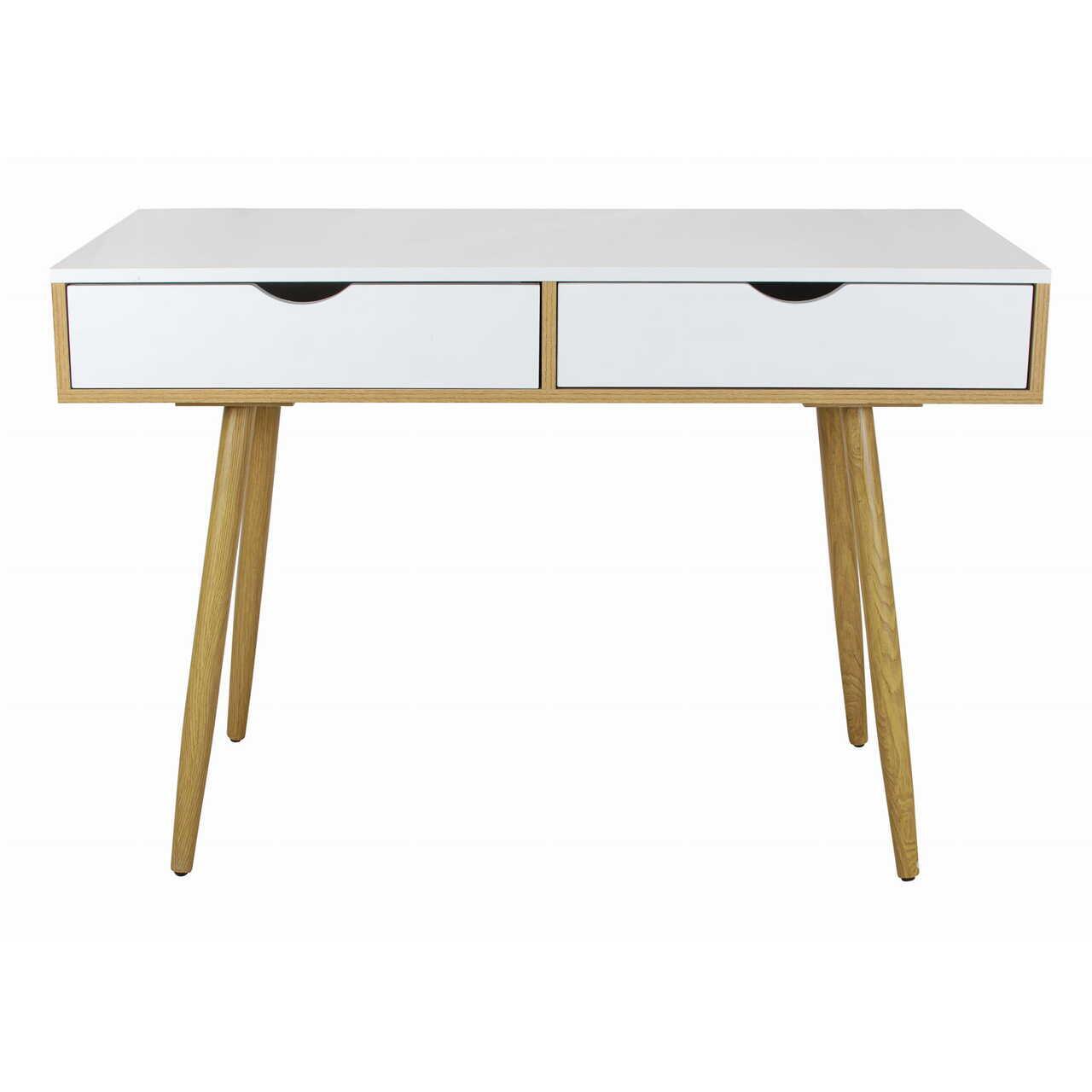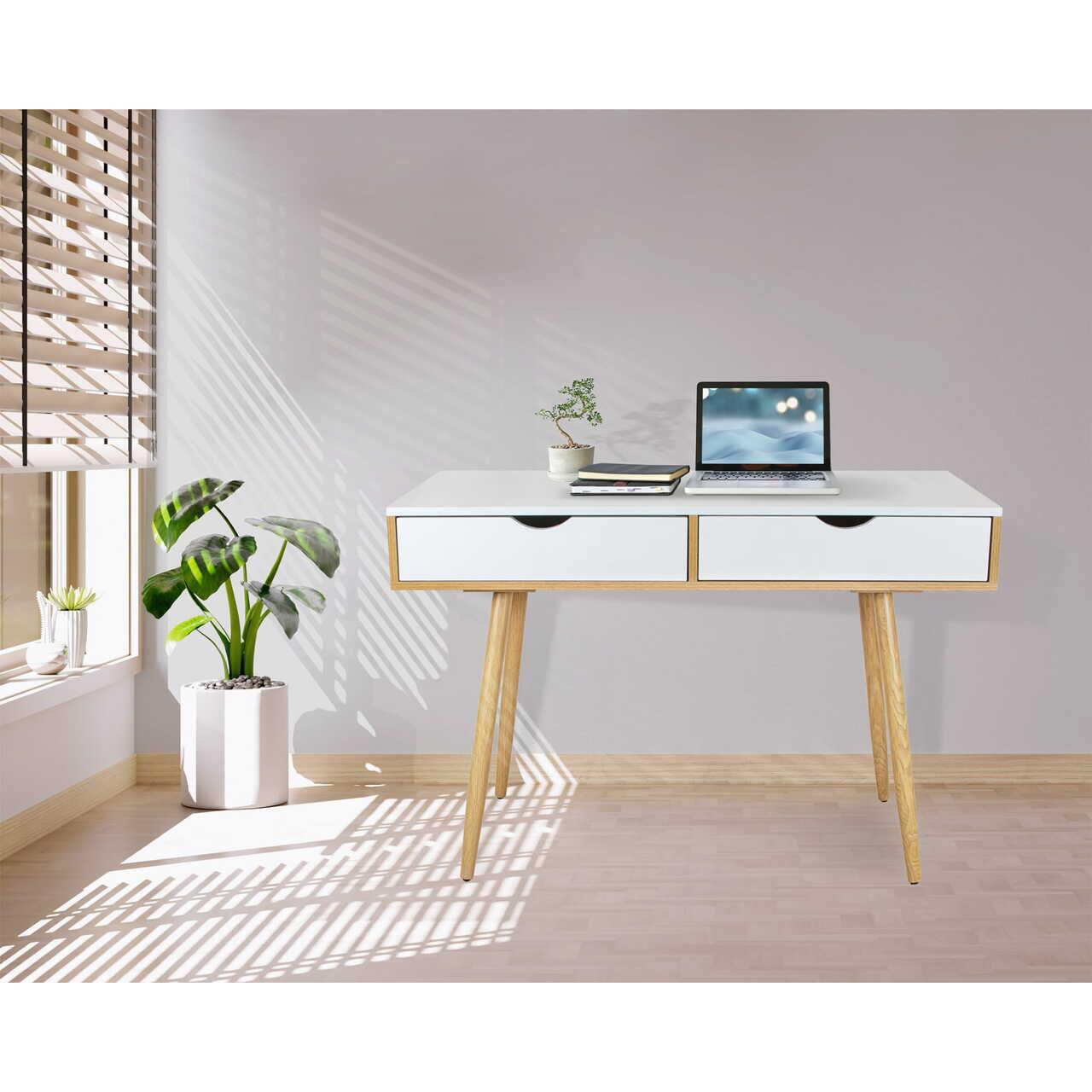 Számítógép asztal, Jumi, MDF lap, 2 fiók, fehér és natúr, 110x50x75 cm