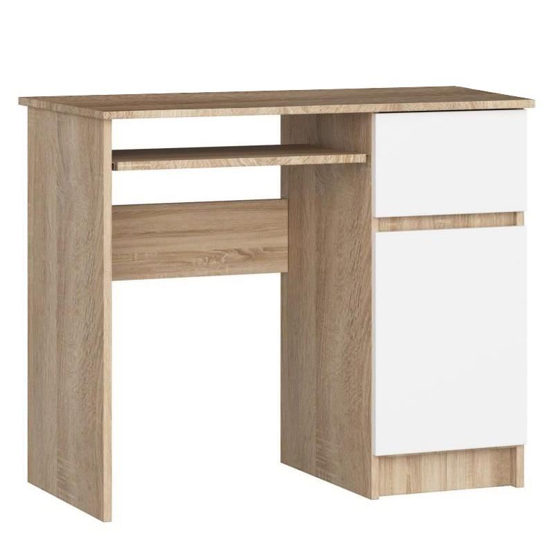 Számítógép asztal, laminált tábla, 1 fiók, 3 polc, tölgy és fehér, 90x50x77 cm, Pixel