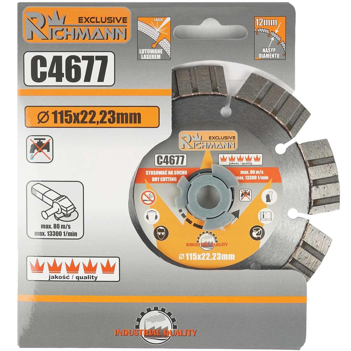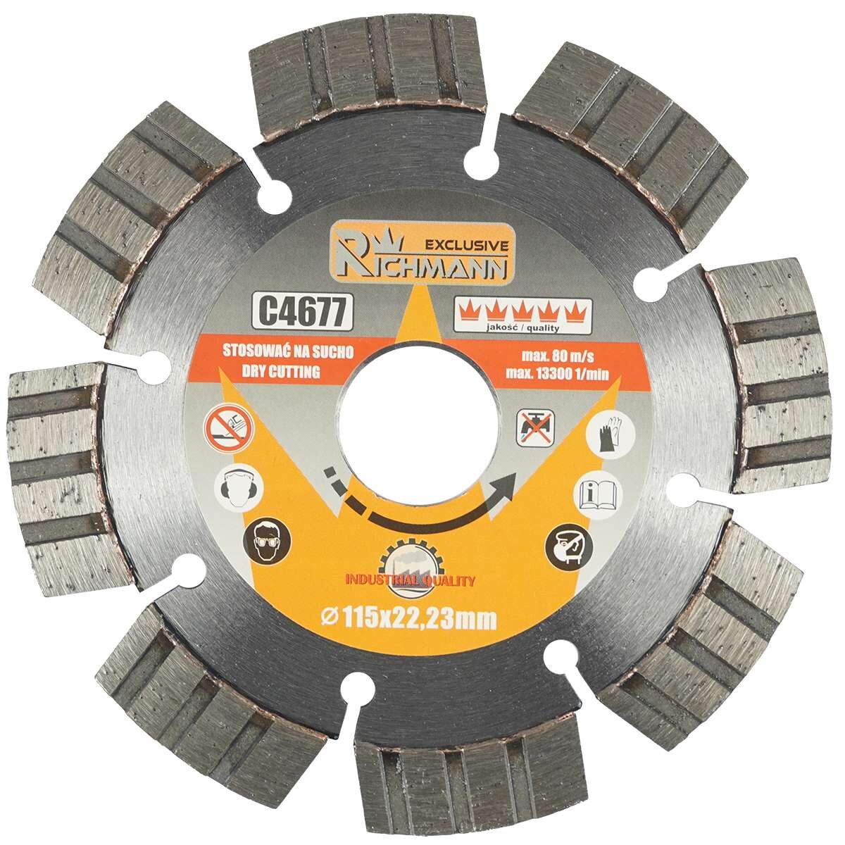 Szegmentált gyémánt tárcsa, beton, tégla, száraz vágás, 115 mm/22,23 mm, Richmann Exclusive