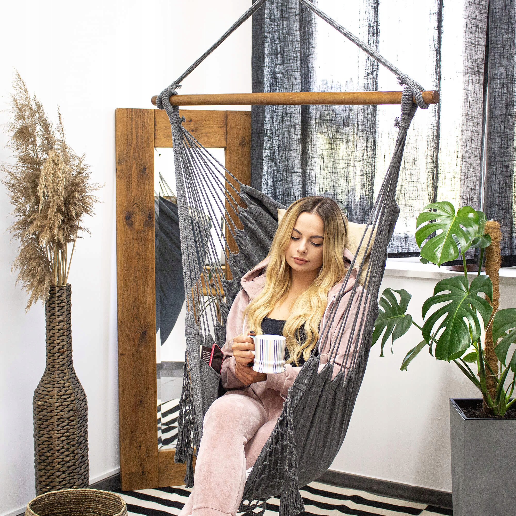 A függőágy akasztható hurokkal rendelkezik, amely lehetővé teszi, hogy egyénileg válassza ki a felakasztás helyét.