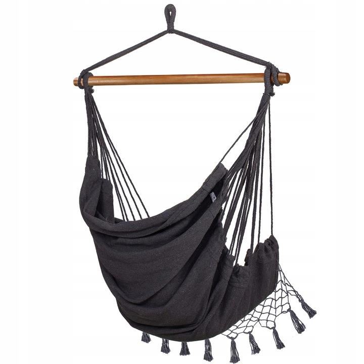 Szék típusú függőágy, 2 párnával, szürke és bézs, max 150 kg, 130x100 cm, Springos