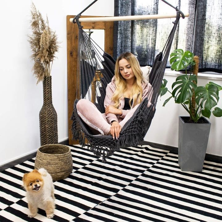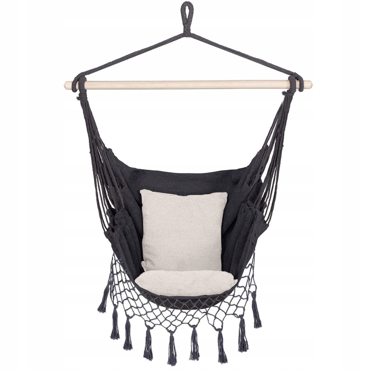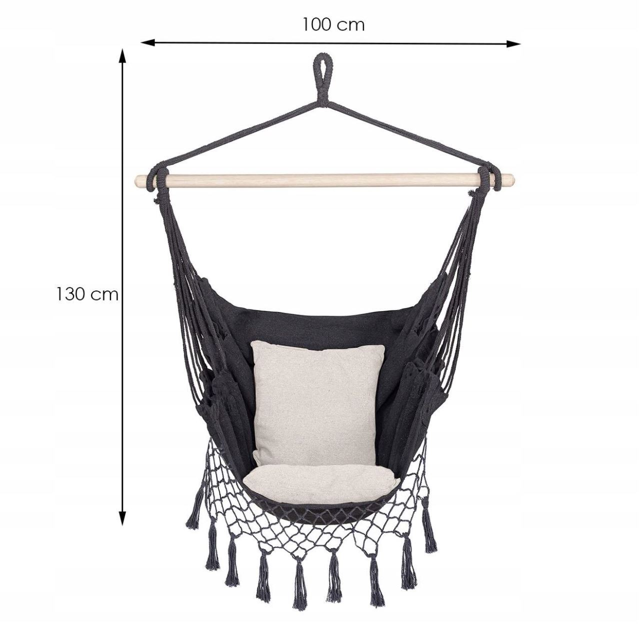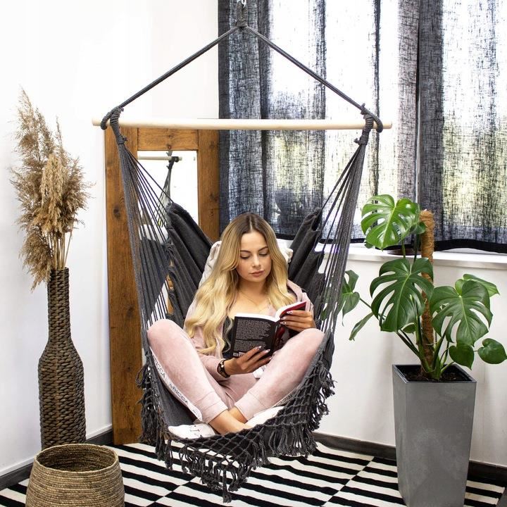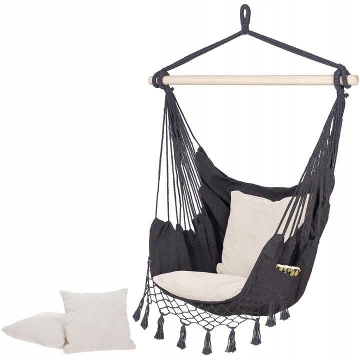 Szék típusú függőágy, 2 párnával, szürke és krémszínű, max 150 kg, 130x100 cm, Springos