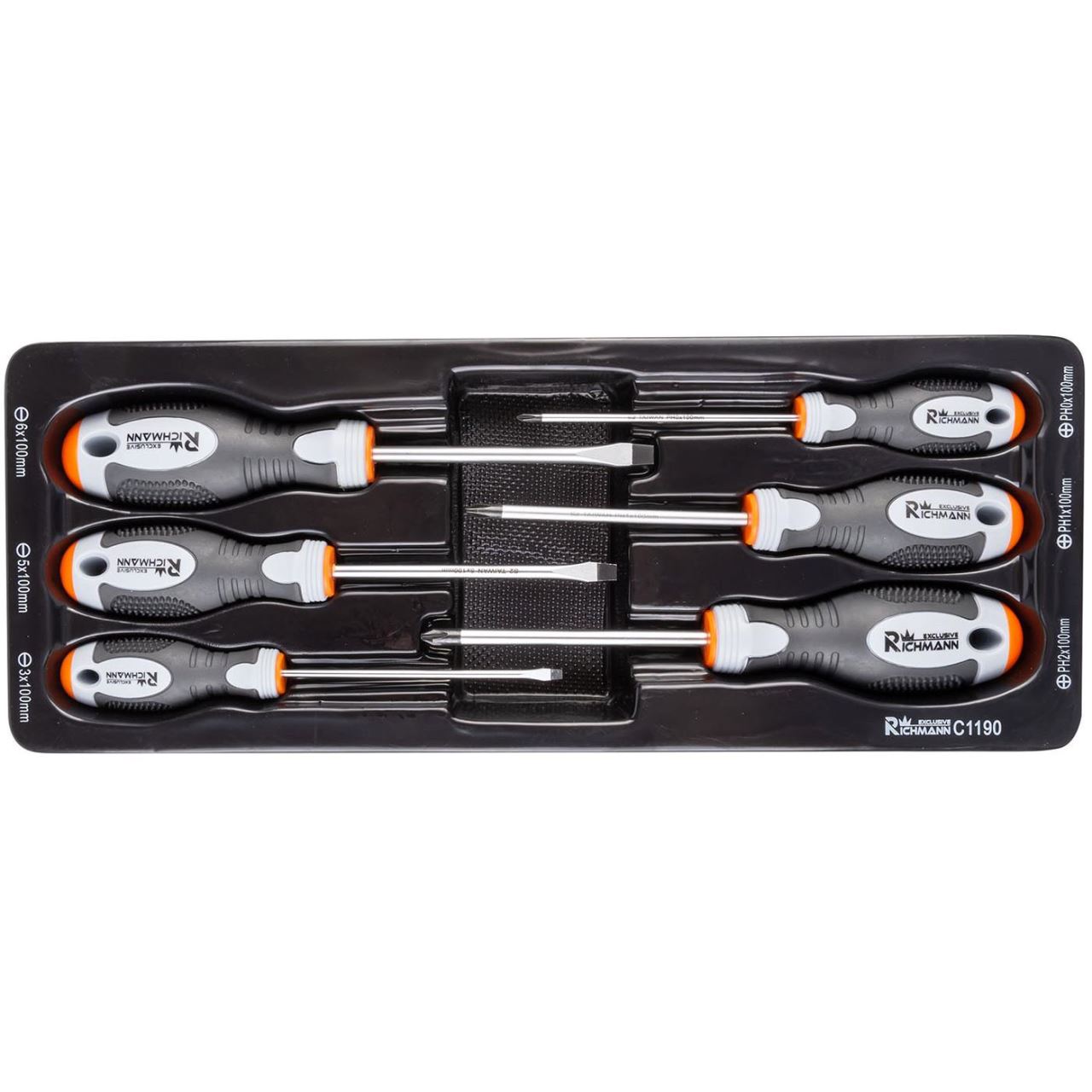 Széles és kereszt csavarhúzó készlet, A TÍPUSÚ fiók (385x150 mm) mobil szekrényhez, PH1-3, 3-6 mm, 100 mm, 6 db, RICHMANN EXCLUSIVE