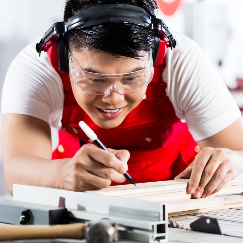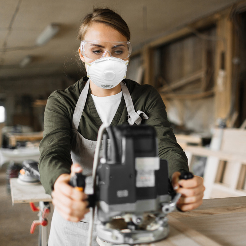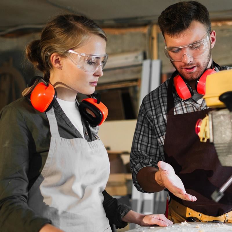 A munkaszemüveg széles kerettel rendelkezik, amely lehetővé teszi a szemüveg viselését.