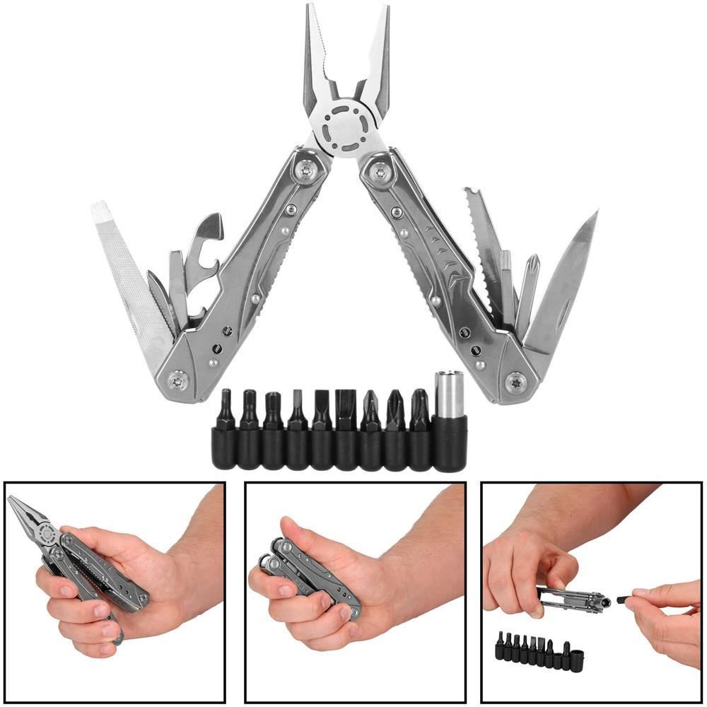 Szerszám, zsebkés, többfunkciós, 22 az 1-ben, hegyek/hegyek, burkolattal, rozsdamentes acél, 16x12,5x1,5 cm, Springos