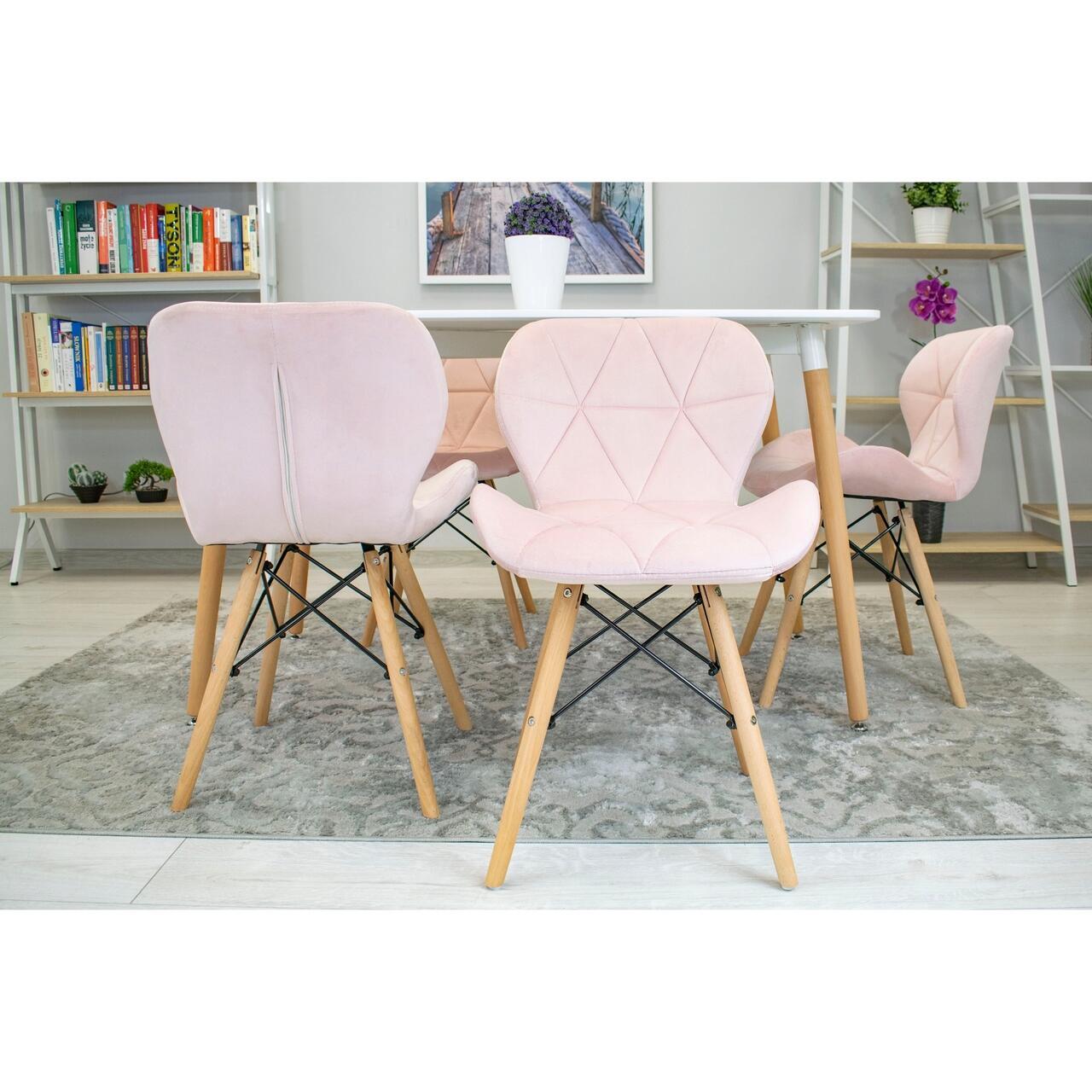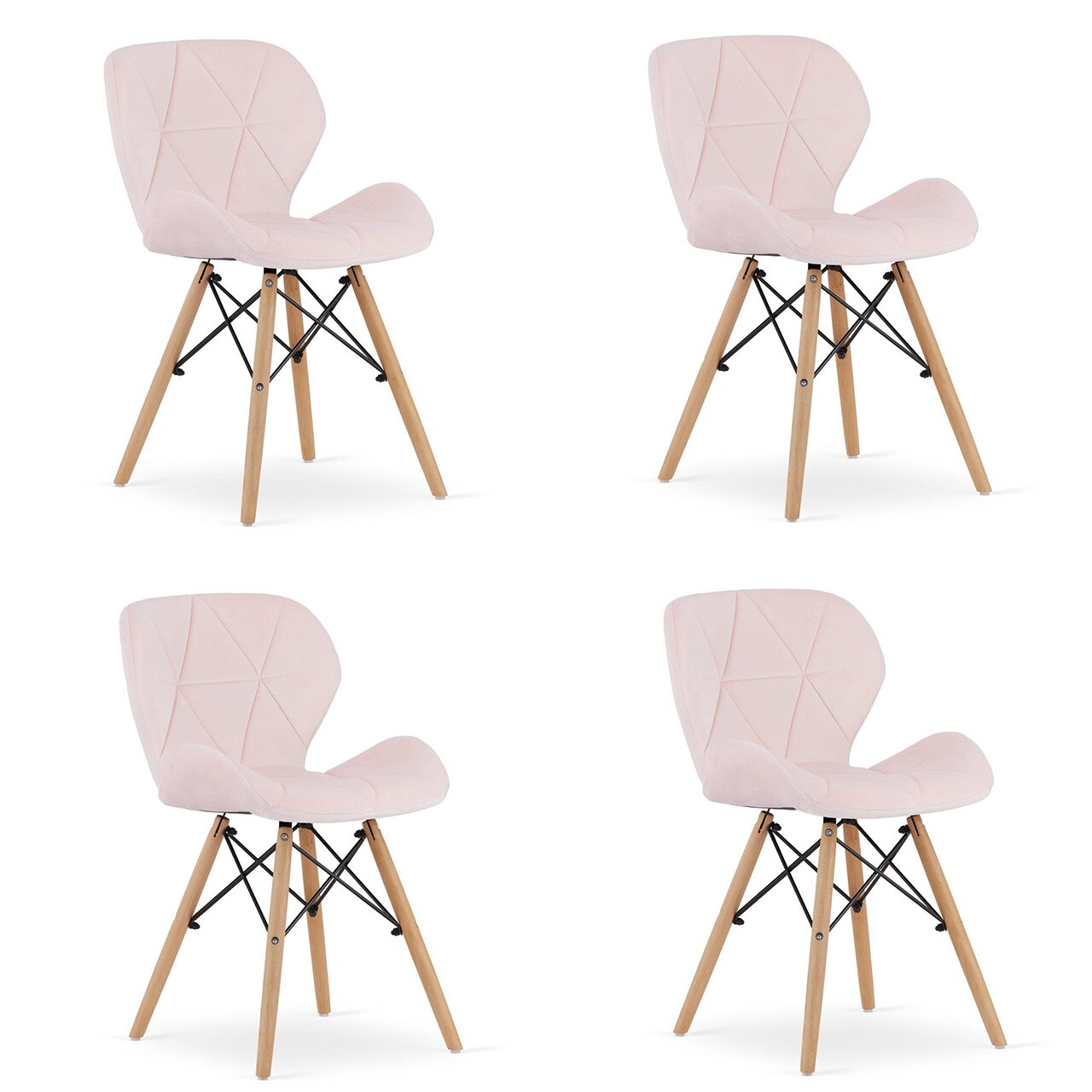 Szett 4db skandináv stílusú szék, Artool, Lago, bársony, fa, rózsaszín, 48x43x74 cm