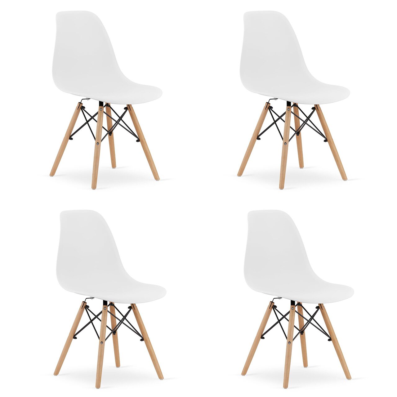Szett 4db skandináv stílusú szék, Artool, Osaka, PP, fa, fehér, 46x54x81 cm