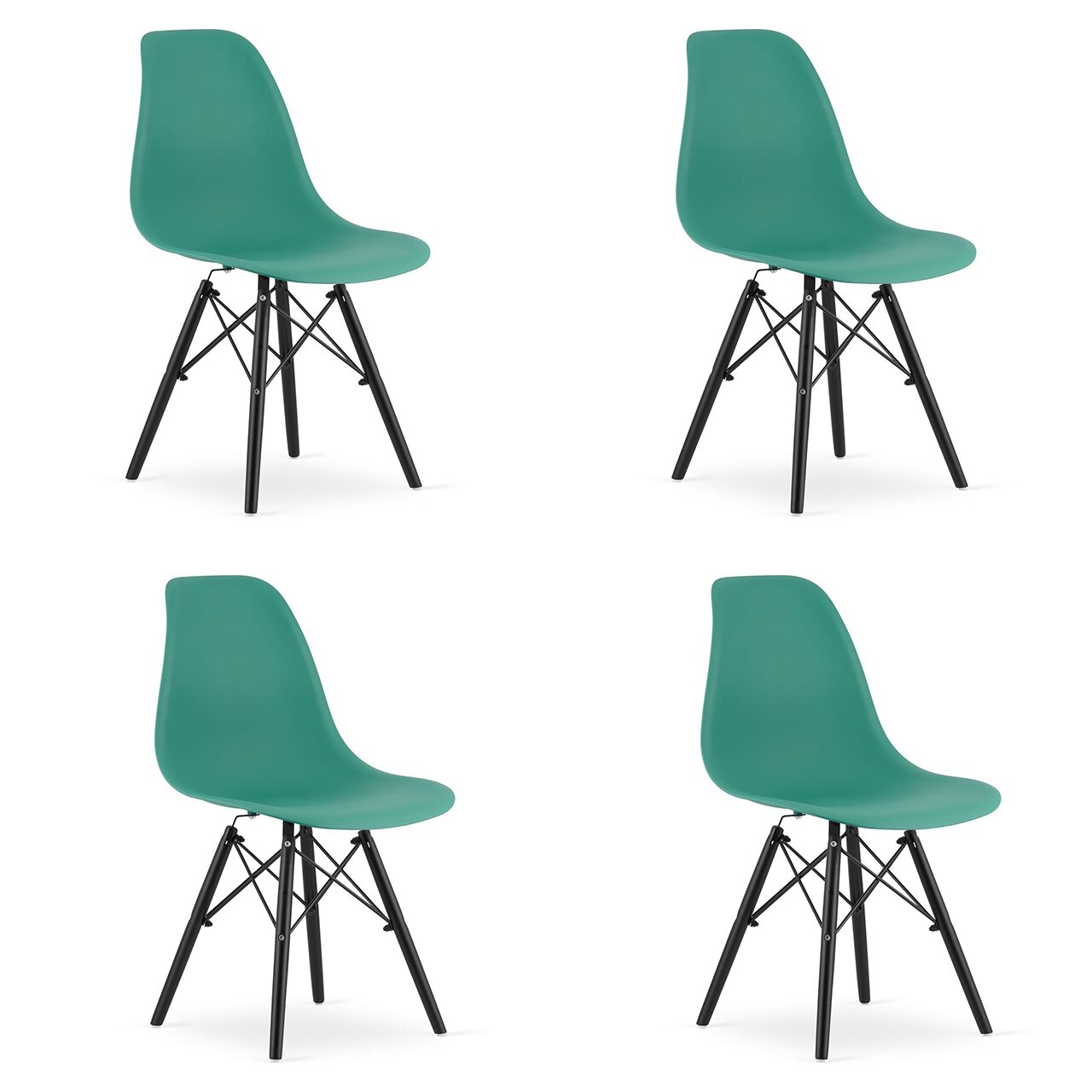 Szett 4db skandináv stílusú szék, Artool, Osaka, PP, fa, zöld és fekete, 46x54x81 cm