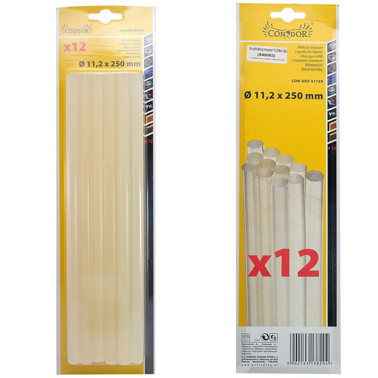 Szilikon rúd ragasztott pisztolyhoz, átlátszó, 12 db, 11x250 mm