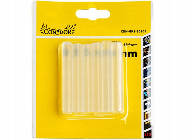 Szilikon rúd ragasztott pisztolyhoz, átlátszó, 12 db, 8x50 mm, Condor