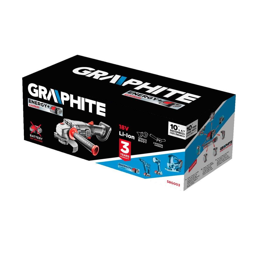 Graphite sarokcsiszoló, kompatibilis a Graphite Energy + 18 V Li-Ion akkumulátorral;