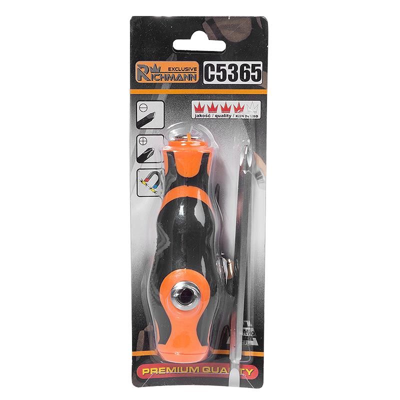 - Megfordítható mágneses csavarhúzó keresztirányú és lapos pengével.