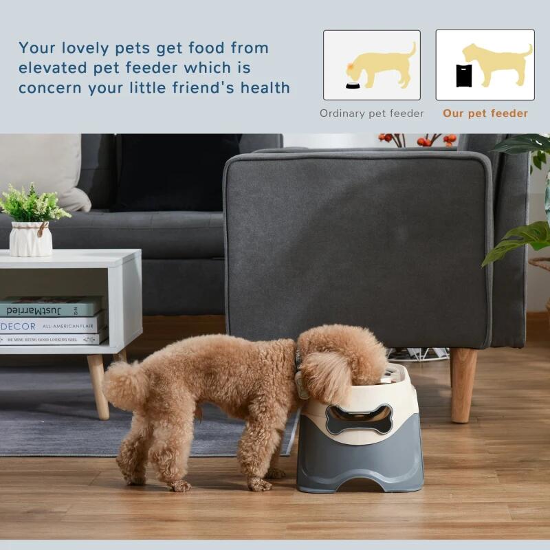 A kutyatál megkönnyíti kedvencei kényelmes etetését. Két rozsdamentes acél tállal van felszerelve, amelyek alkalmasak száraz, nedves élelmiszerek vagy víz tárolására, tartósak és könnyen tisztíthatók. A megemelt kialakítás segít az állatoknak kényelmesebb helyzetben enni, a csúszásmentes lábak pedig biztosítják a tál stabilitását, csökkentve a felborulás kockázatát.