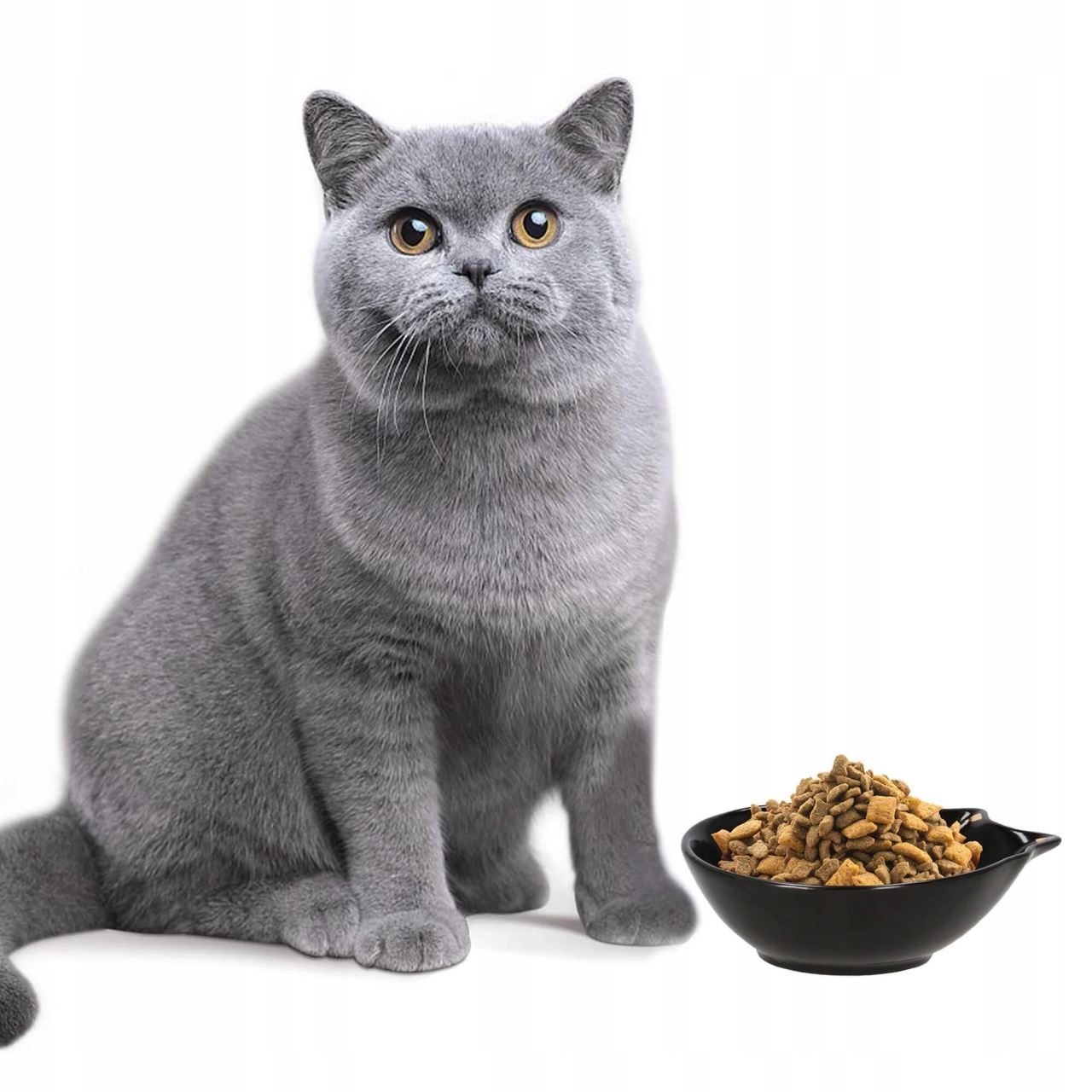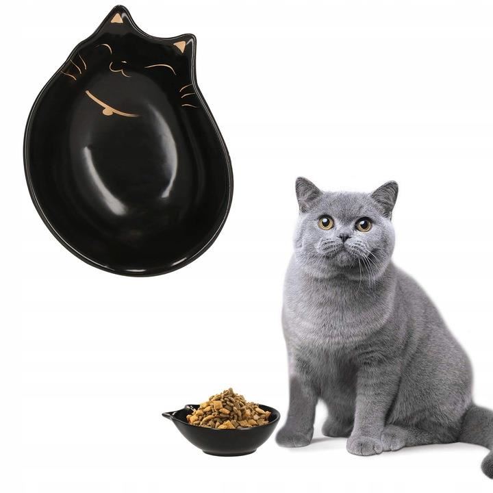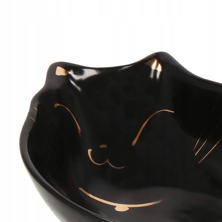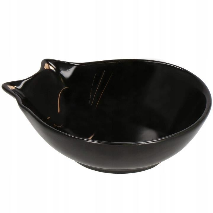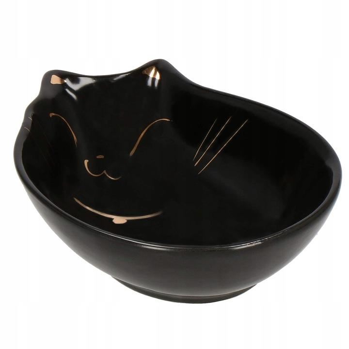 Tál, tál, kutyának, macskának, kerámia, fekete, macska mintás, 15x11x5 cm