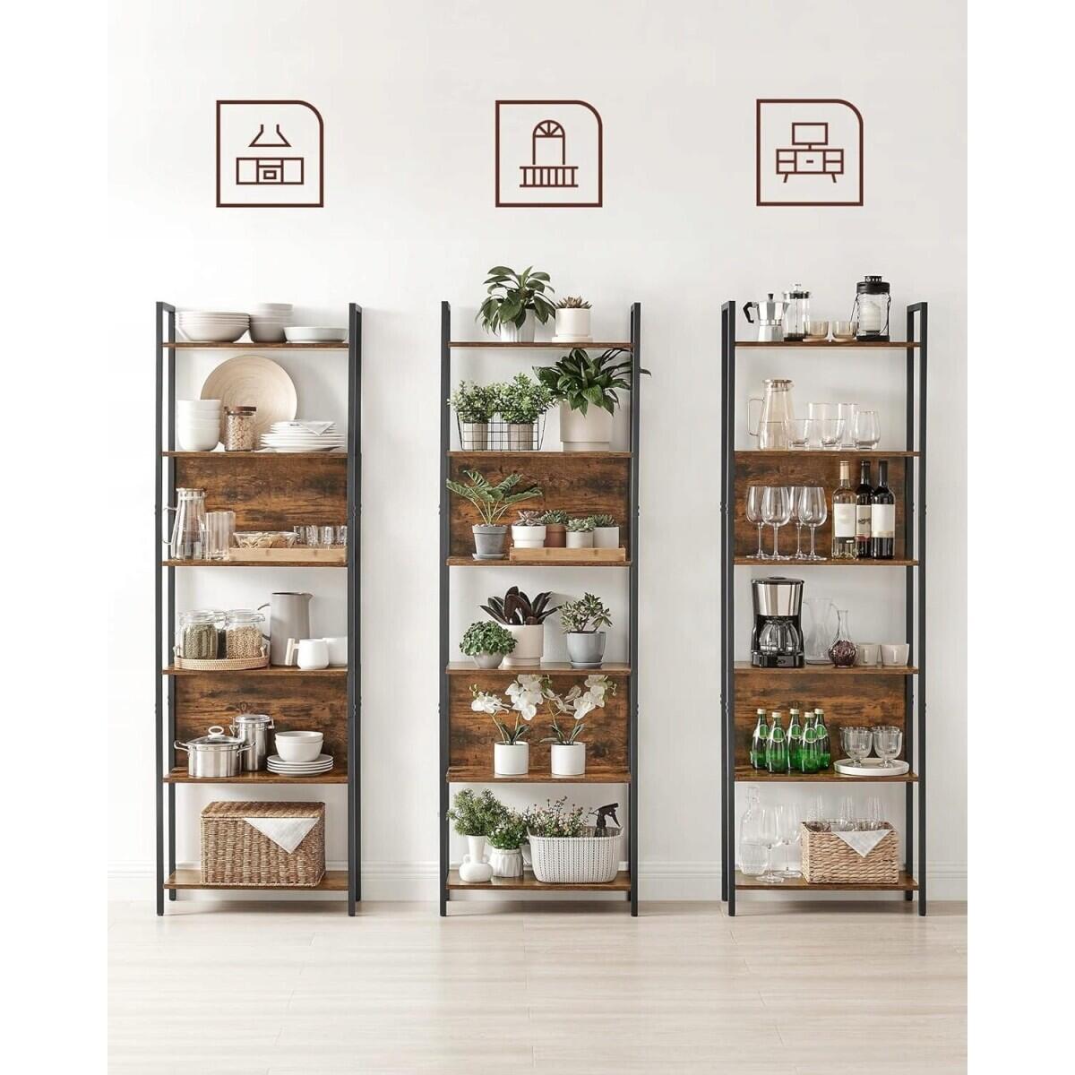 Tárolópolc, Artool, halvány, acél, 6 polc, rusztikus barna és fekete, max 23 kg, 60x24x186 cm