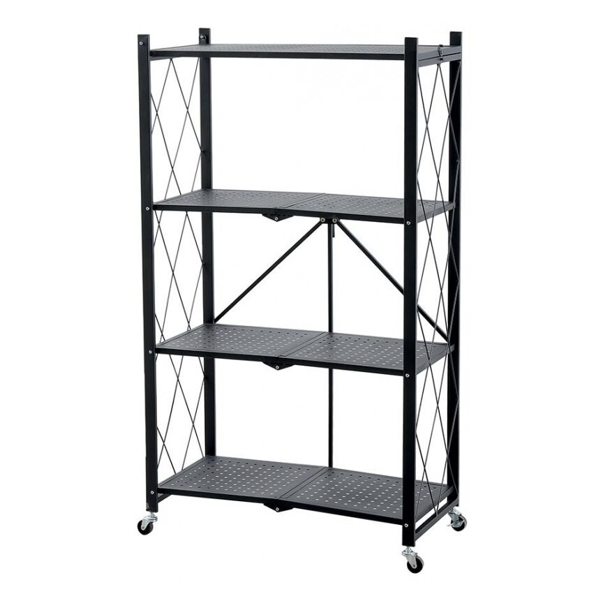 Tárolópolc, MagicHome, fém, összecsukható, kerekeken, 4 polc, fekete, max 200 kg, 72x34x127 cm