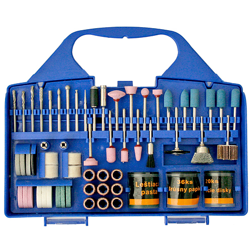 Mini-daráló tartozékok, 116 db, Strend Pro Strend Pro csiszoló- és csiszolótartozék készlet. A készlet tartalma: fúrók, mini marók, különböző méretű csiszolócsíkok, kéttengelyű kefék ....