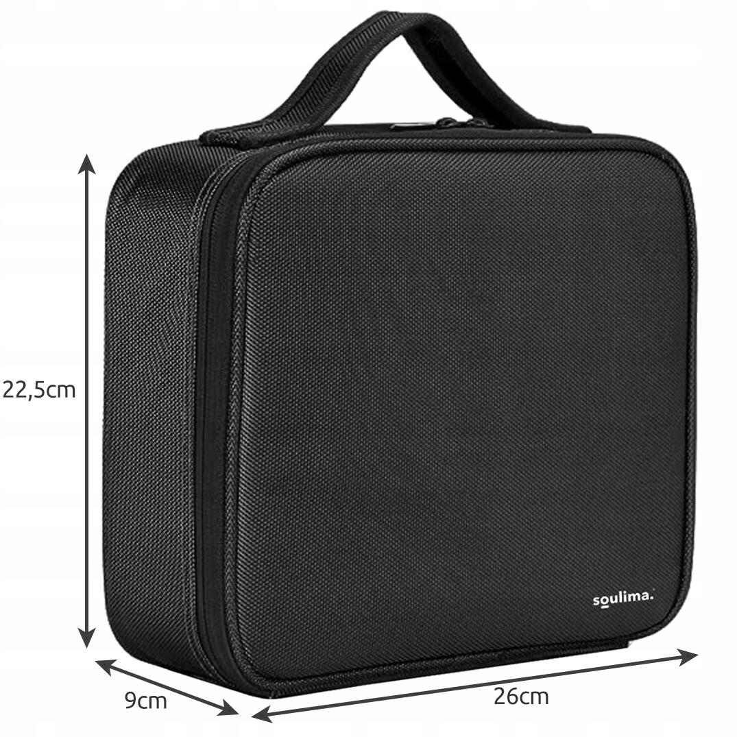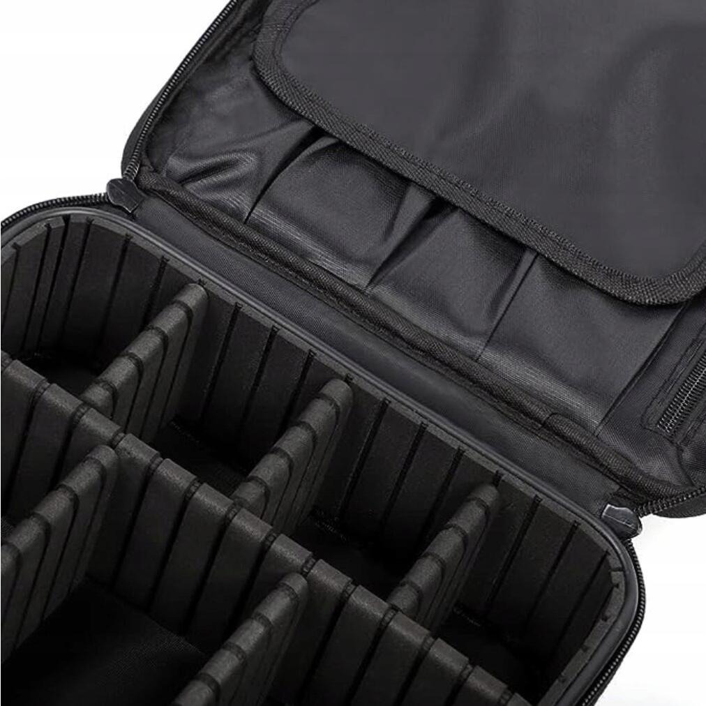 -  Különböző méretű terekkel, mobil rekeszekkel és rugalmas zsebekkel rendelkezik, amelyek lehetővé teszik a kozmetikai termékek egyszerű rendszerezését és szétválasztását. Nagy kapacitása lehetővé teszi nagyszámú tárgy tárolását minden zsebben.