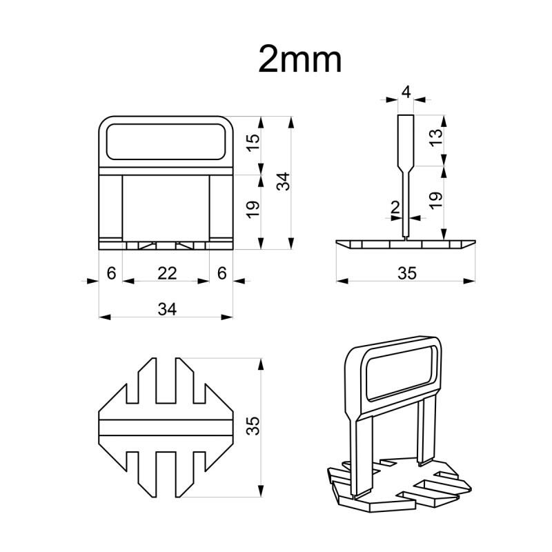 Távtartó készlet kerámia burkolólapok kiegyenlítéséhez és igazításához, 100 db, 2 mm, Beorol