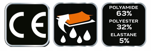 - Anyagösszetétel: 63% poliamid + 32% poliészter + 5% elasztán
