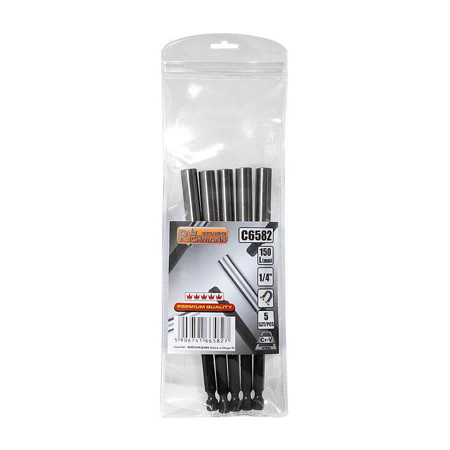 Hegytartó, 1/4", 150 mm, (5 darabos készlet), RICHMANN EXCLUSIVE Króm-vanádium acélból (Cr-V) készült hegyek (bitek) készlete, mágneses csúccsal.