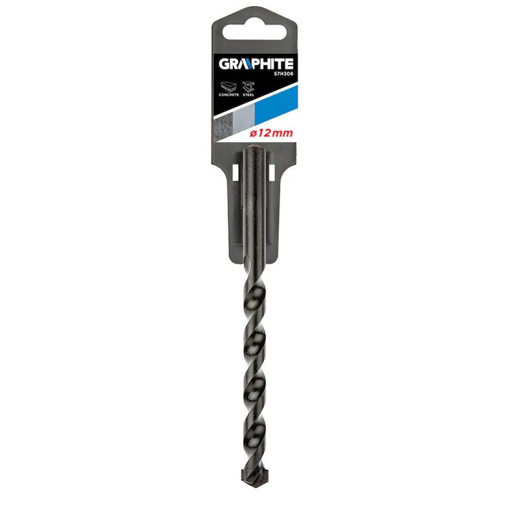 GRAPHITE univerzális fúró, amely a kemény ötvözet hegyének speciális kialakításának köszönhetően minden anyag fúrására alkalmas. Használható lyukak fúrására fába, fémbe, műanyagokba, valamint olyan anyagokba, amelyek ezek kombinációja.
