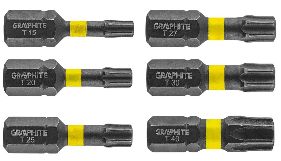 Peaks/B hatás Hatás Graphite, A 25 mm-es teljes hosszúságú Torx típusú fúrók nagy terhelésekhez, nagyobb nyomatékú   nehéz munkákhoz készültek;