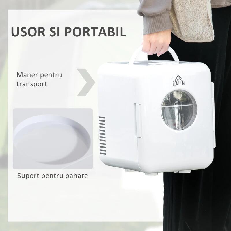 Turista hűtőszekrény, mini, 12V/220V, fehér, 4 L, 25,8x20,5x26,3 cm