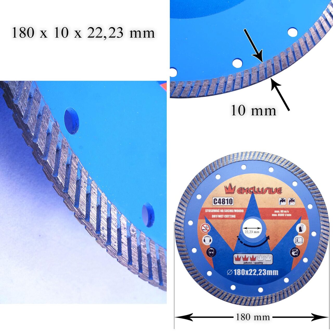 A tárcsa átmérője 180 mm, vastagsága 3,0 mm, furata 22,23 mm, gyémánt felülete 10 mm.
