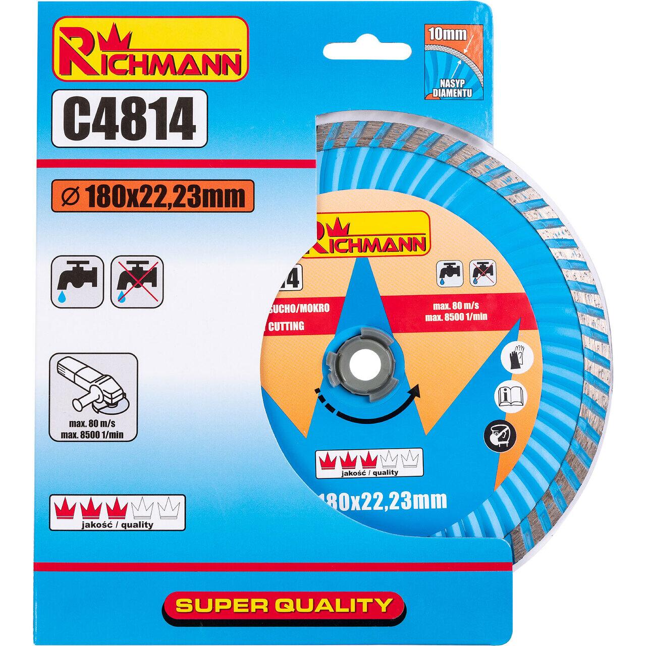 Turbó gyémánt tárcsa, beton, nedves és száraz vágás, 180 mm/22,23 mm, Richmann Exclusive