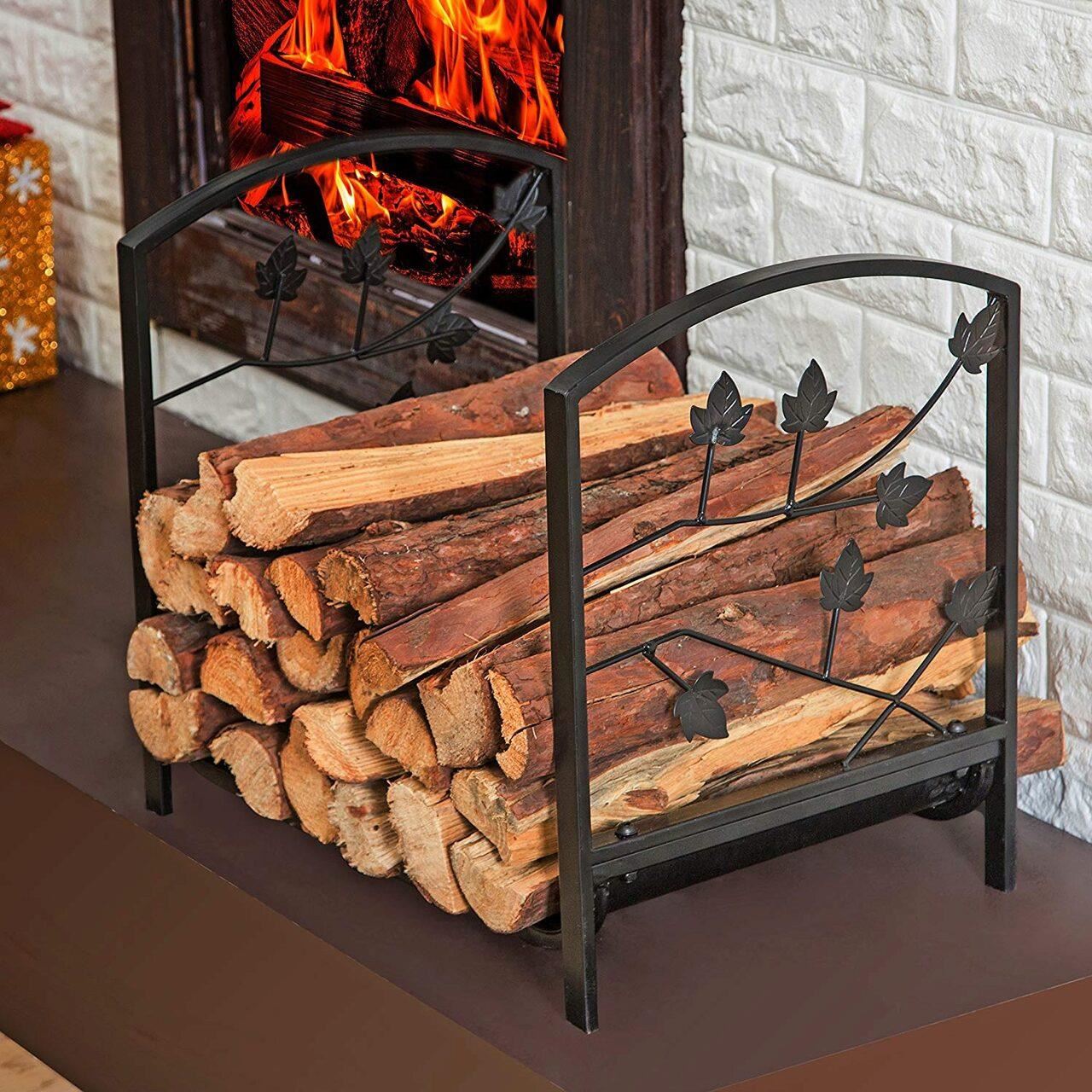 Tűzifa állvány, fekete, 41x33x42 cm