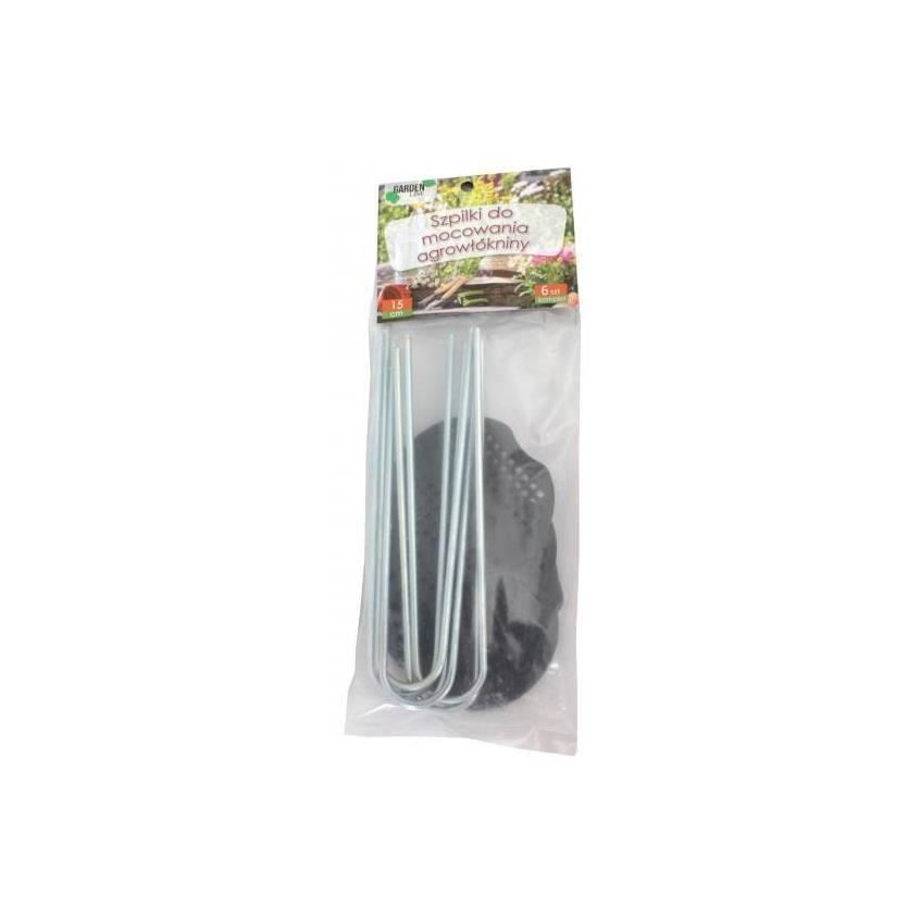 U-típusú szög műanyag rozettával, kerti fóliák rögzítésére, 25 cm, 6 db-os készlet