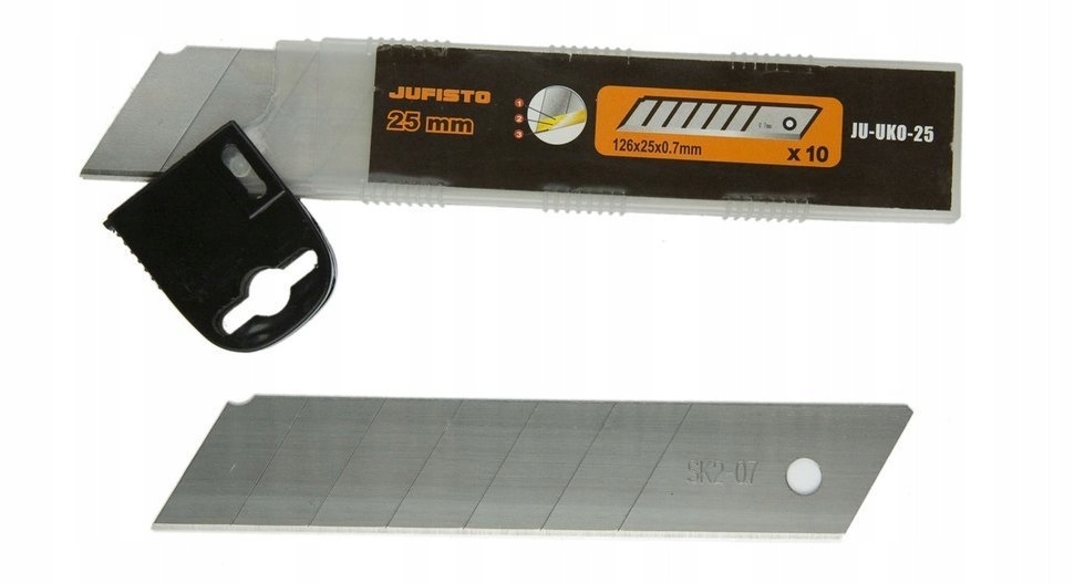 Vágókések, 25 mm, 10 db, JUFISTO A Jufisto pengék kiváló minőségű acélból készülnek, ami akár 50%-kal növeli a tartósságot. Speciális élezési módszer - csiszolás trif ...
