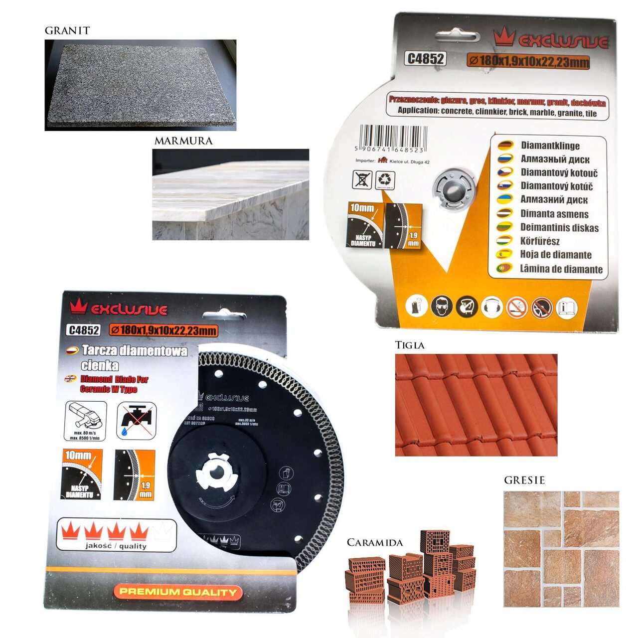 ,  , A gyémánt korongok különféle anyagokat, például aszfaltot, betont, természetes követ, kerámiát, porcelánt stb. vághatnak. Néhányat olyan anyagok csiszolására is használnak, mint a gránit, márvány és kő, hogy különleges fényt és tökéletes felületet biztosítsanak.