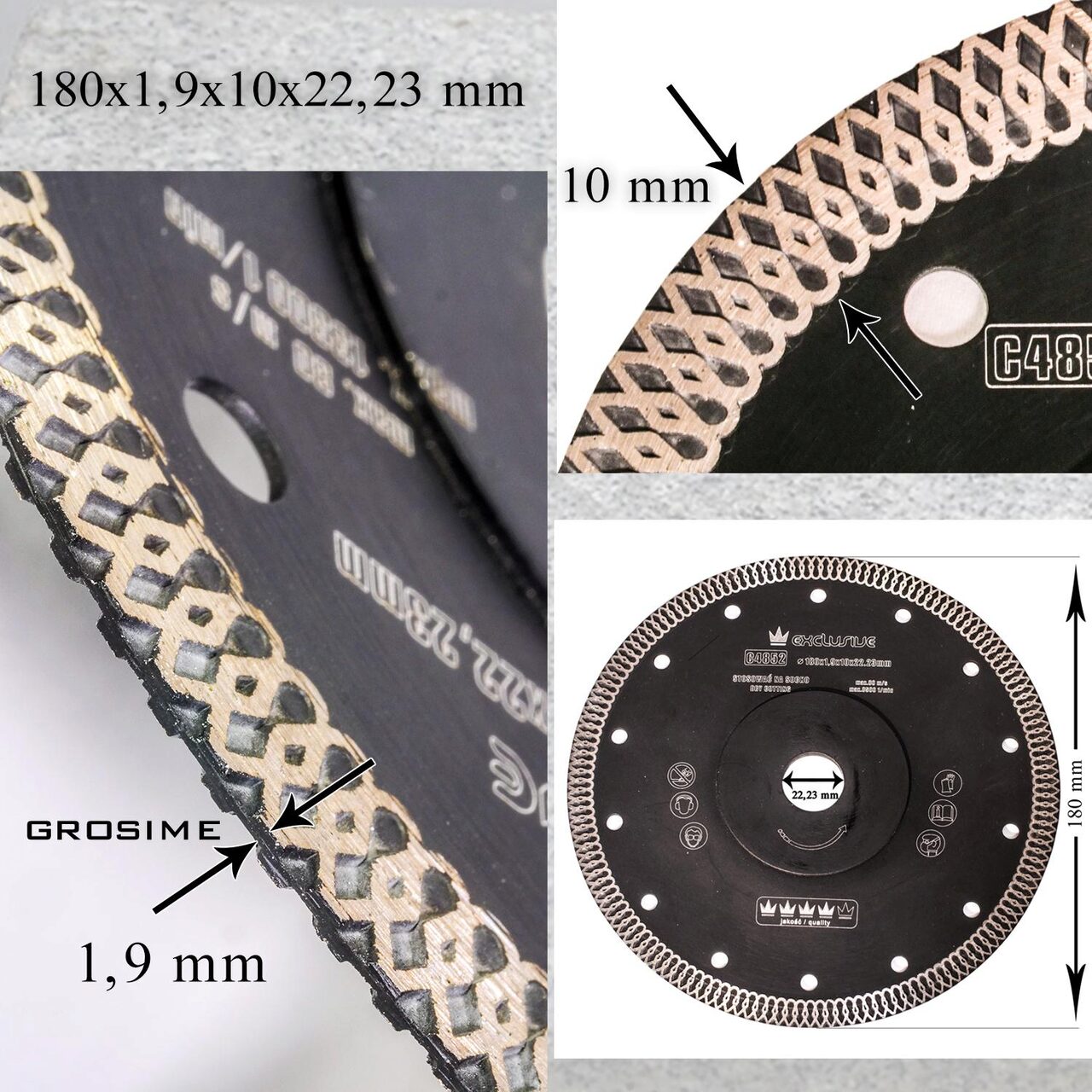 Turbó gyémánt tárcsa, kerámia csempe, nedves és száraz vágás, 180 mm/22,23 mm, Richmann Exclusive