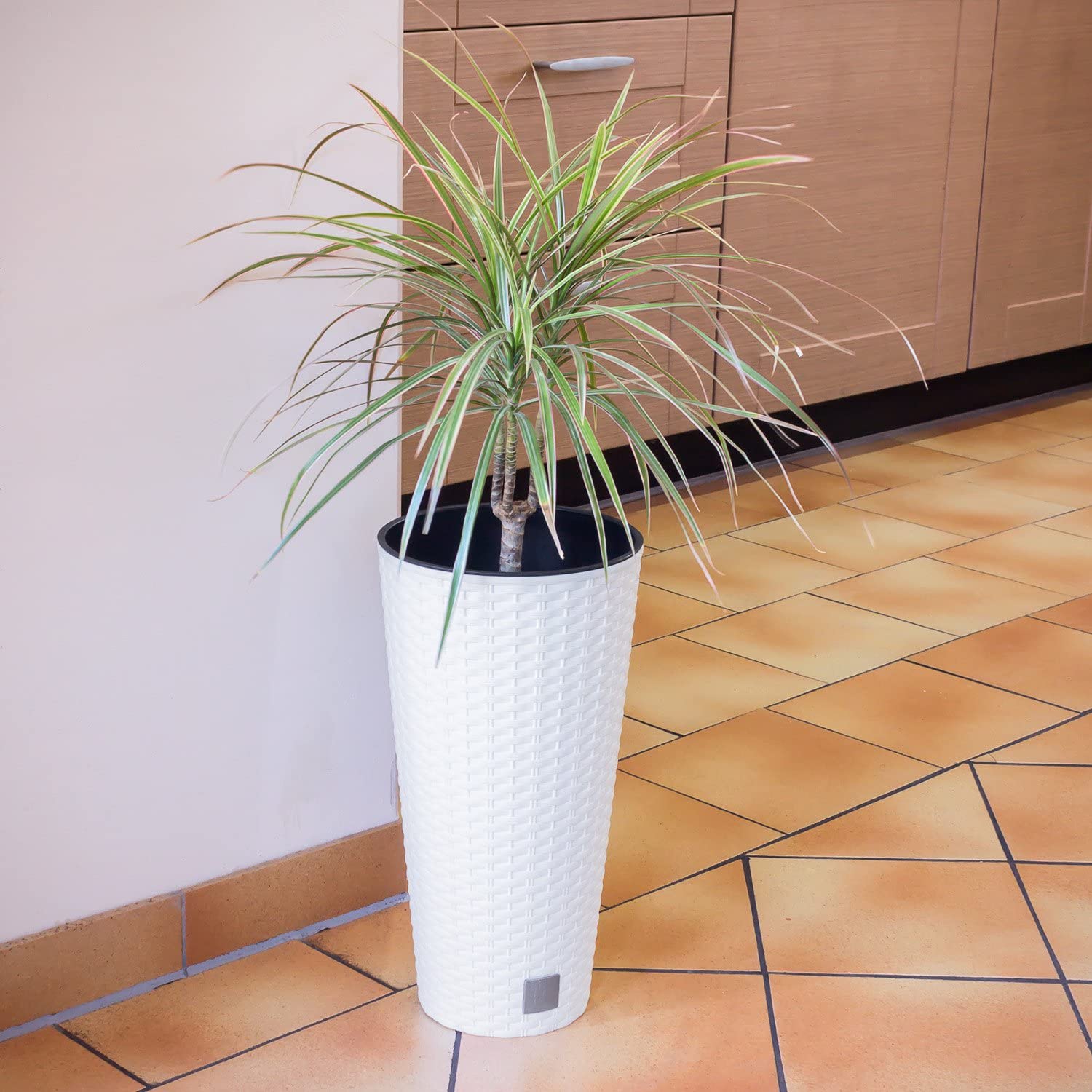 Virágcserepek, Prosperplast, Rato Tubus, magas kerek, 15 L, rattan utánzat, fehér, 25x47,6 cm