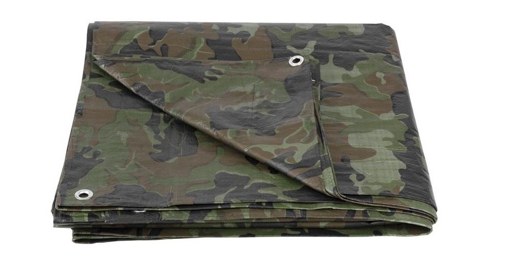 Vízálló ponyva gyűrűkkel, 7,9x11,9 m, PE, 80 g / nm, terepszínű, 96 nm