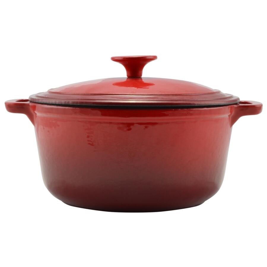 Zománcozott öntöttvas edény fedővel, piros, 6,5 L, Perfect Home